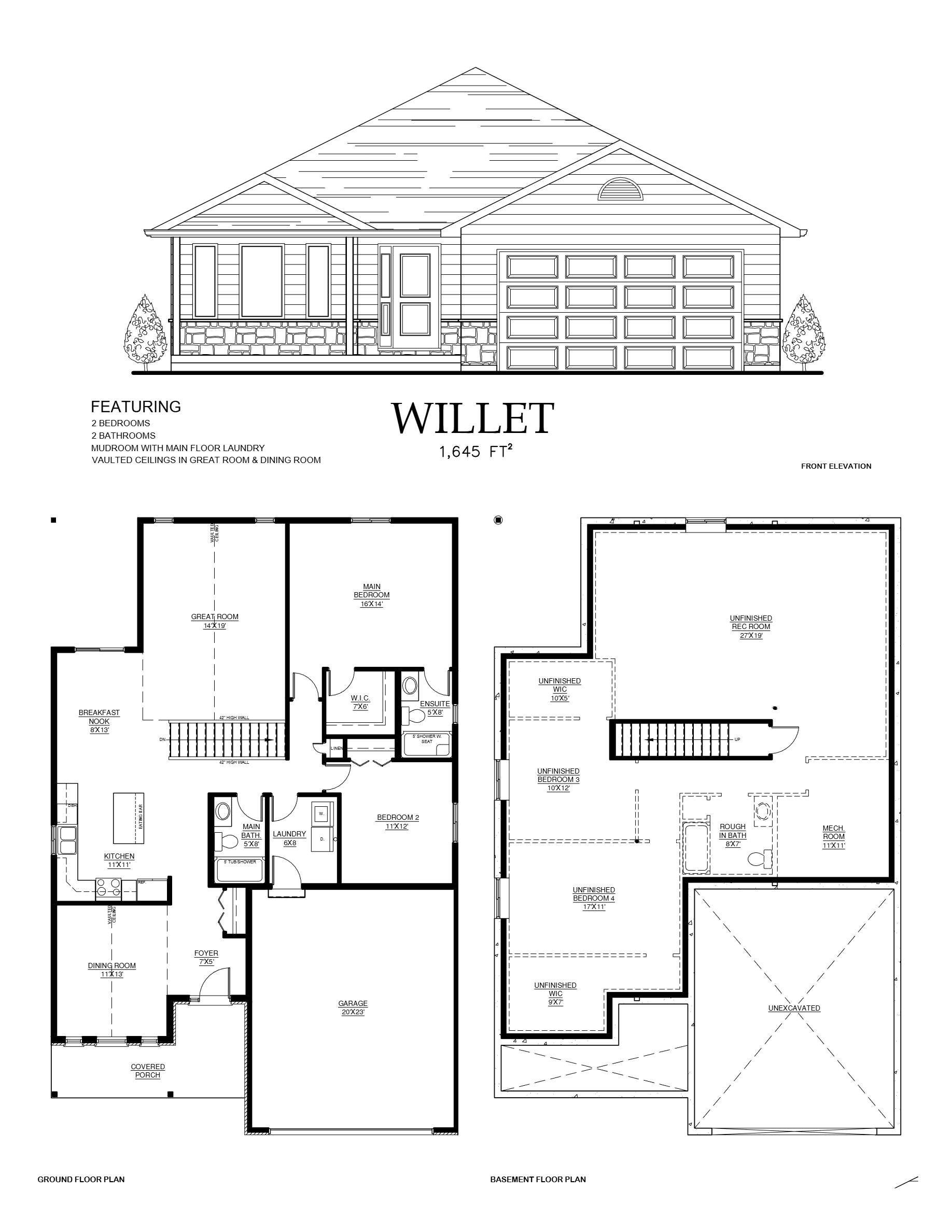 This 1,645 sq. ft. home features 2 bedrooms and 2 bathrooms, with vaulted ceilings in the great room and dining room that create an open, airy atmosphere. The mudroom with main floor laundry adds everyday convenience.